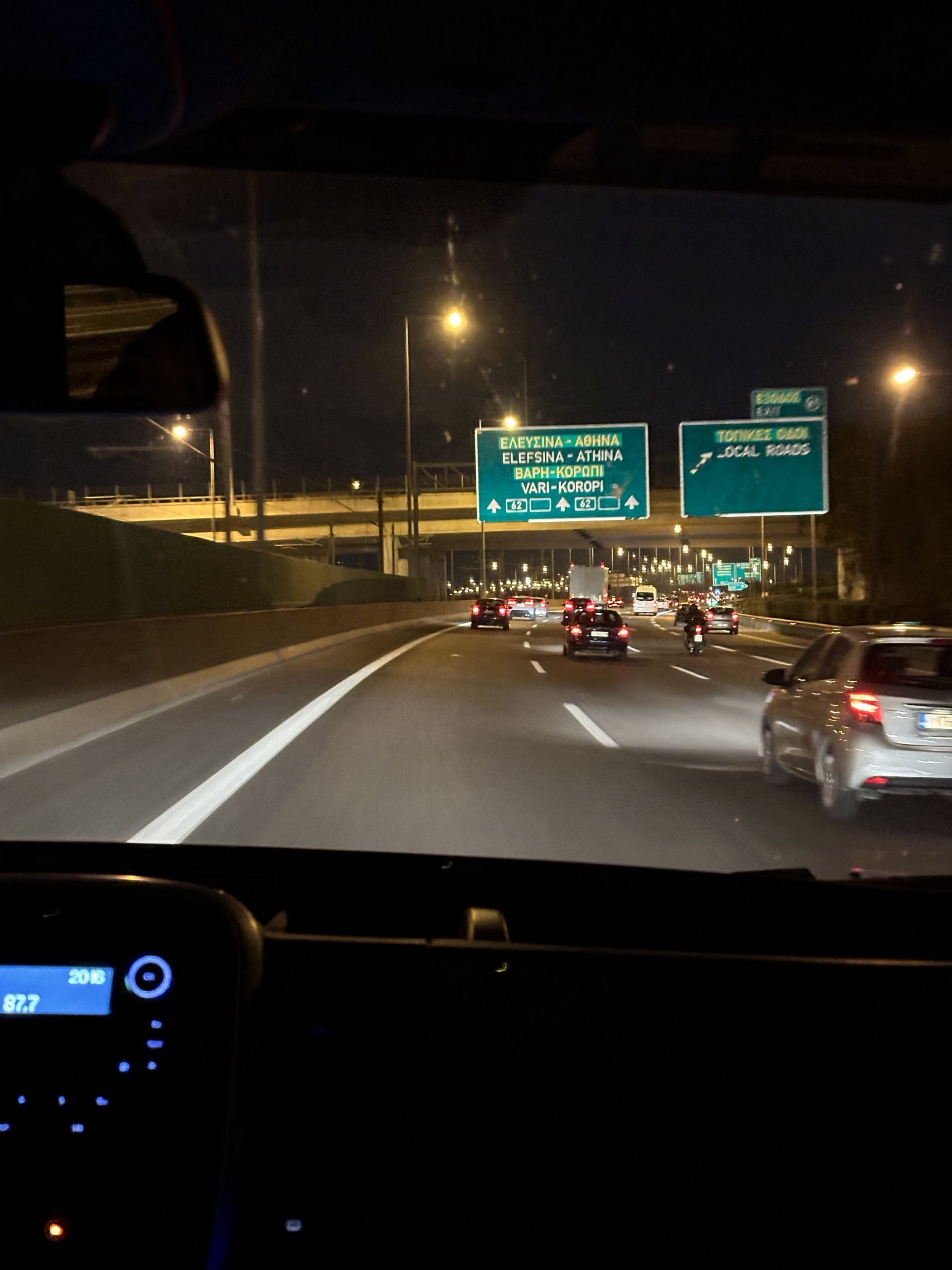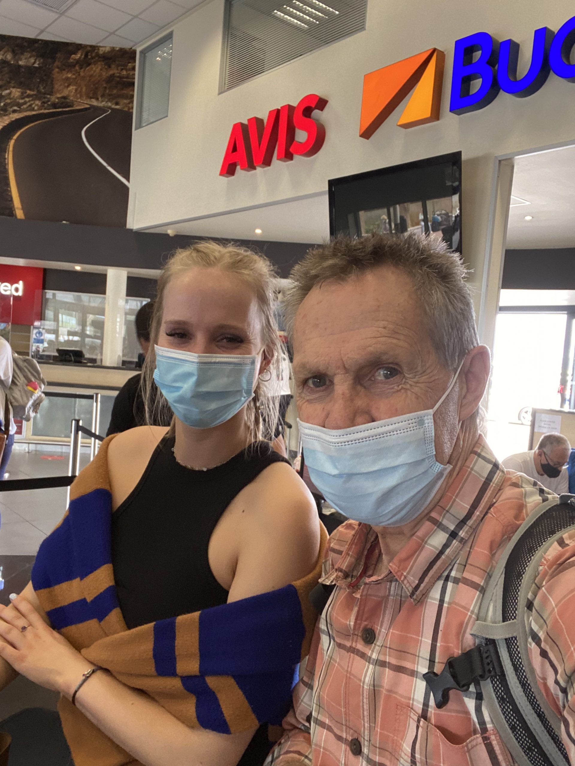 Our B&B guests obliged by having their breakfasts early so that we could head off to the airport at 9am. Taxi arrived driven by a somewhat nervous and elderly driver. Astrid and Charlie in the back and me in front, chatting to the driver.