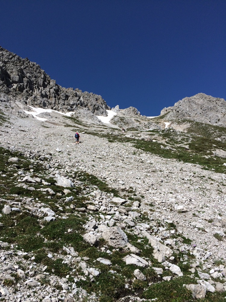 - If I had known how difficult today would be I might have planned it differently. After a Jungle Oats start to the day we made steep 400 vertical climb to Loreascharte. Outstanding view of a vast valley below. Only problem being that we had to climb steeply down a loose stone path that damn near killed my legs and which went on forever.