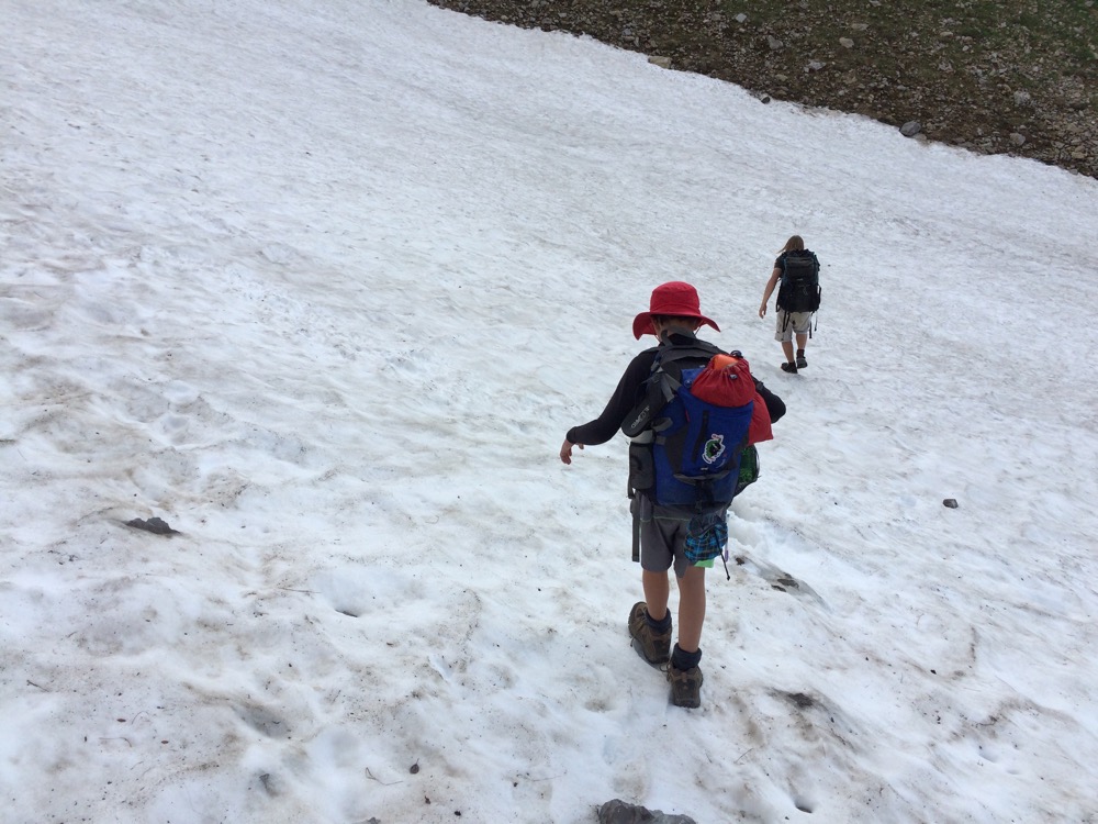 - That was the theme of the day- about 20kms which included 1200m of vertical ascent PLUS 1200m of descent. Even Guy’s boots disintegrated and eventually (believe it or not) he was hiking in my Crocs! We crossed rivers, rock screes and snow in +30c temperatures. At around 16:00 we still had to clear this valley and climb over the mountain with few hundred meters vertical descent on other side.