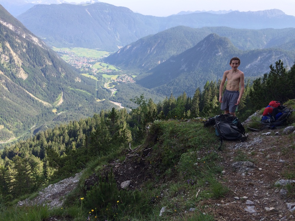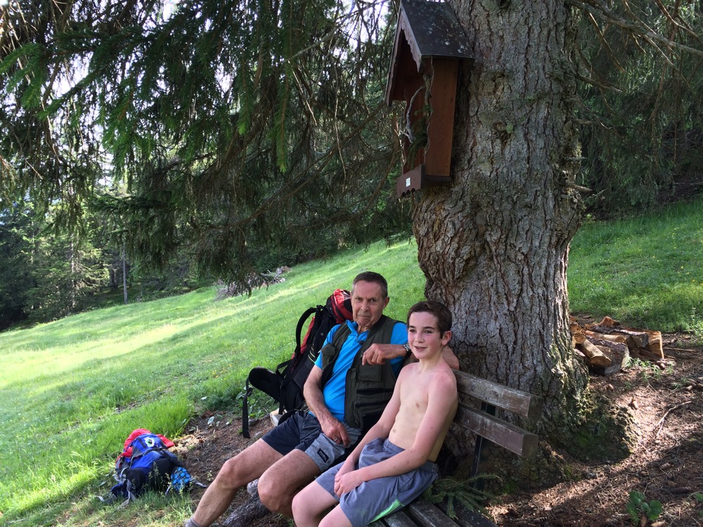 Climbed off at Lermoos, a pretty and typical Austrian village. Missed the Postbus into the hills so taxi it was. The big slog started when we got to Fernsteinsee. Relentless steep uphill, first real break at an open “alm”